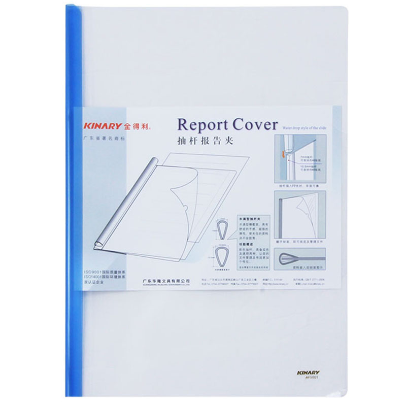 • 金得利 AF5001 A4透明抽杆报告夹文件资料夹 蓝色10个装