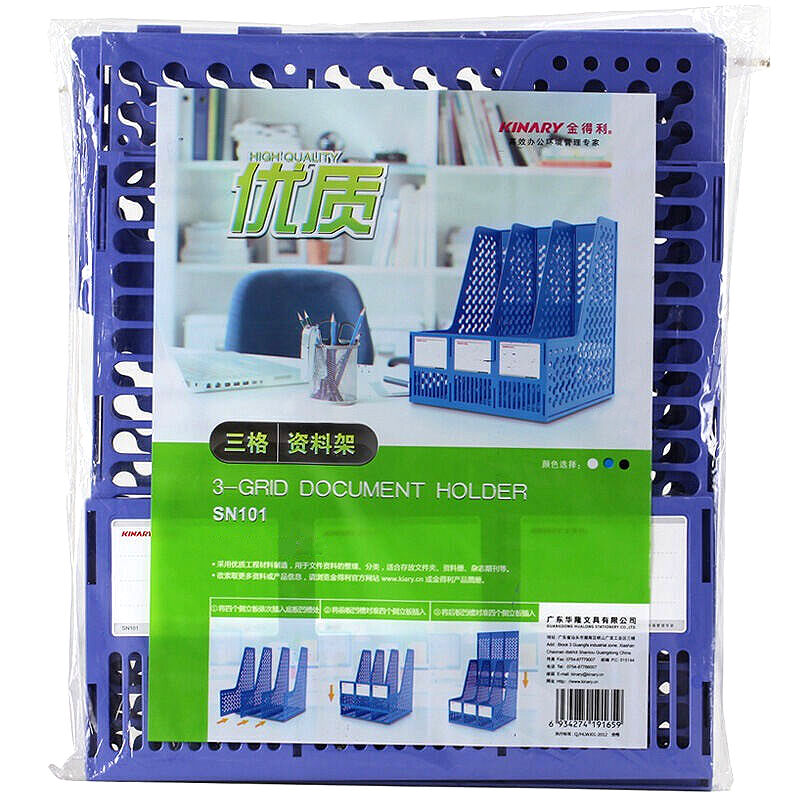 • 金得利(KINARY)资料架文件筐文件栏3格4格6格 3格蓝色(SN101)