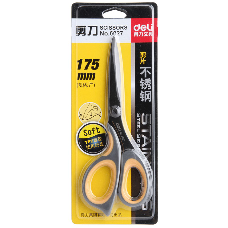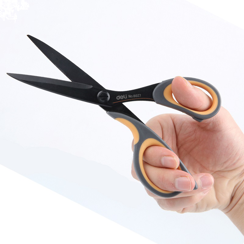 • 得力(deli)175mm中号不锈钢剪刀 黑色6027