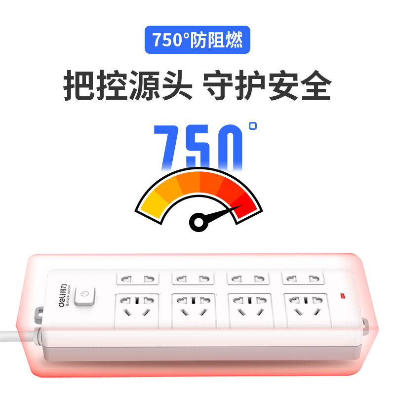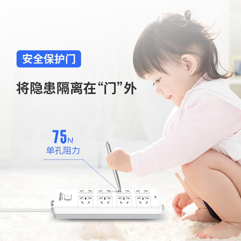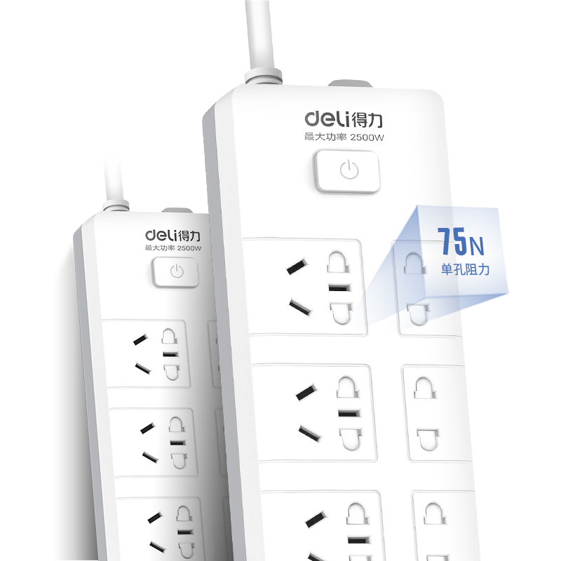 • 得力(deli)新国标安全插座 插排/插线板/接线板/排插/拖线板总控开关儿童保护门8位3米18258