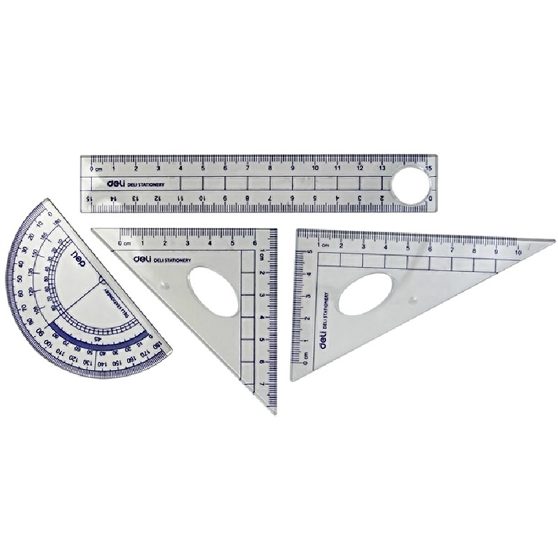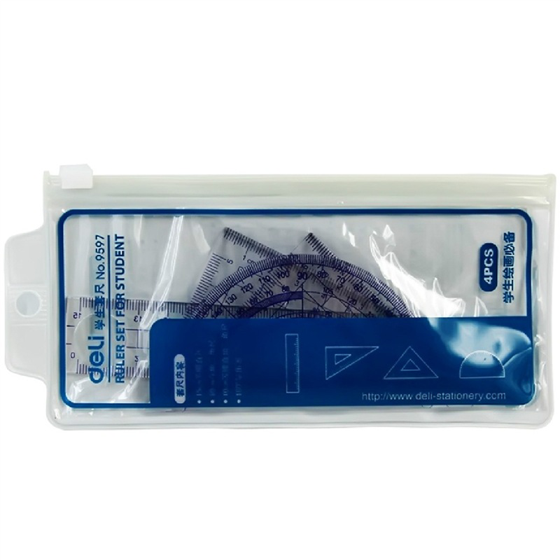• 得力(deli)9597 学生文具绘图尺子四件套尺(直尺+三角尺*2+量角器)2套装