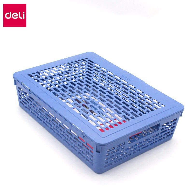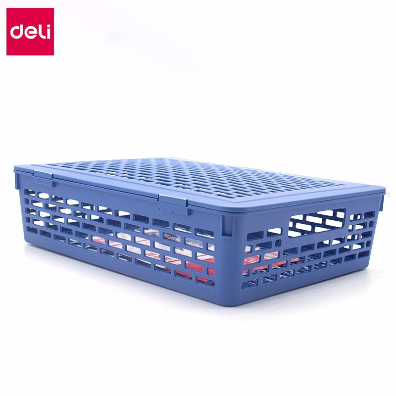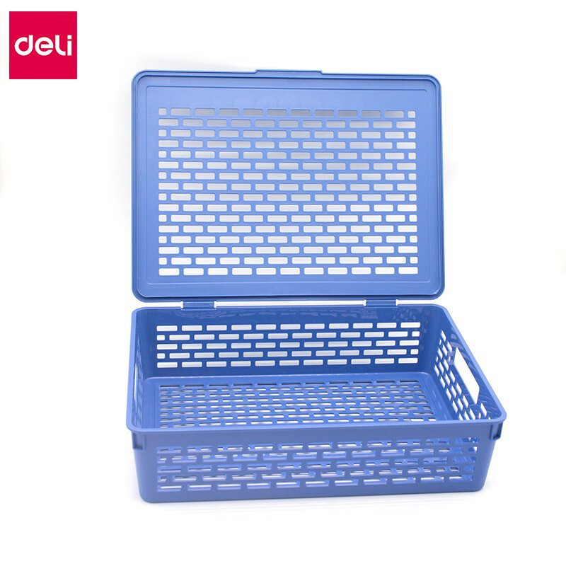 得力(deli)923/929文件篮带盖子 公文篮发票票据篮文件筐文件架蓝色办公用品340*253*88mm/923有盖蓝色2个装