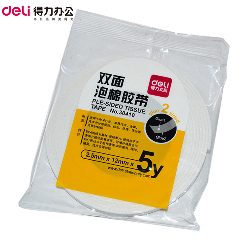 • 得力(deli) 双面泡沫胶带 强力泡沫海绵胶 厚型双面胶条宽12mm长4.5m30410(10个装)
