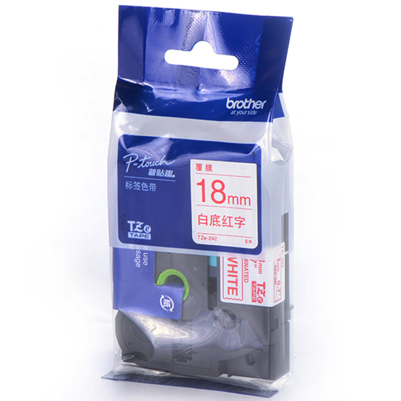 兄弟 brother 标签机色带 TZe-242/TZe-Z242 18mm (白底/红字) 新老包装更换中