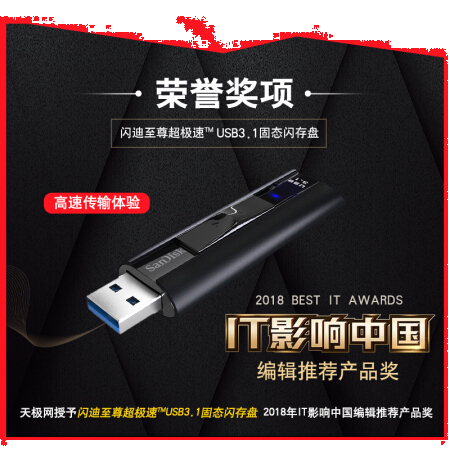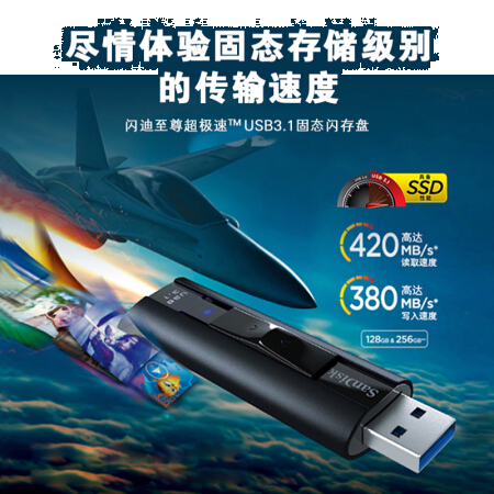 闪迪SanDisk128GB USB3.1至尊超极速固态U盘 CZ880 读速高达420MB/s 写380MB/s 移动固态硬盘般的传输体验
