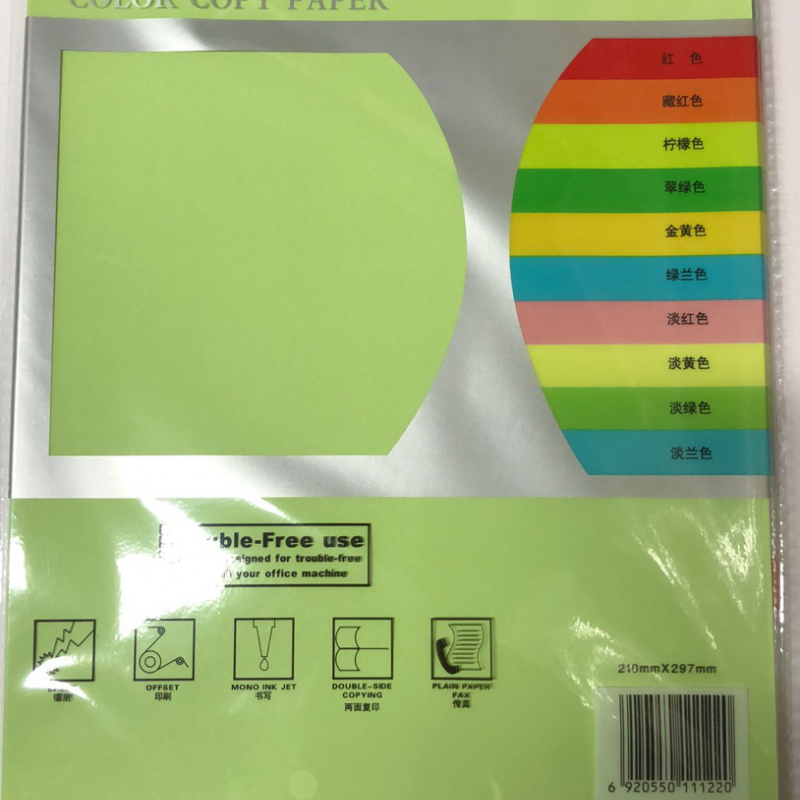 • 创世纪 彩纸浅绿色100张/包 70克A4复印纸/手工折纸DIY卡纸剪纸/彩色打印纸