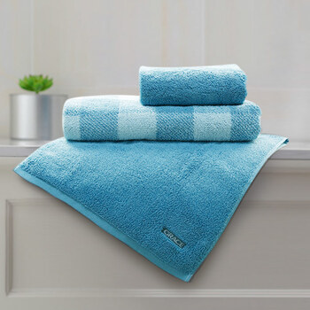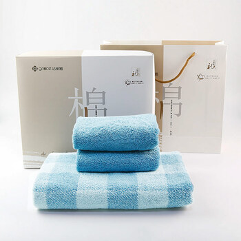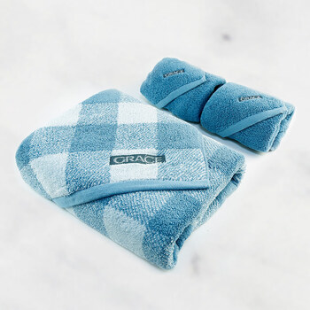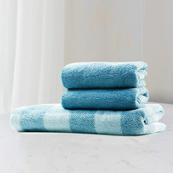 • 洁丽雅(Grace)纯棉毛巾浴巾三件套 吸水方格男女通用礼盒套装(提供手提袋) 毛巾*2+浴巾*1 蓝色系列