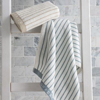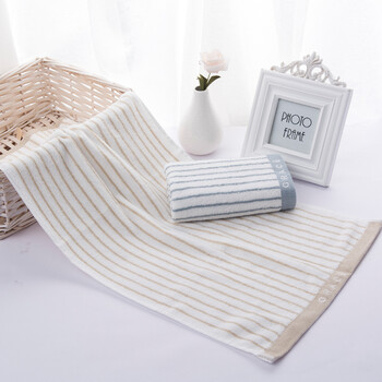 • 洁丽雅(Grace)毛巾家纺 经典条纹系列纯棉强吸水毛巾 二条装 兰/棕 72*34cm