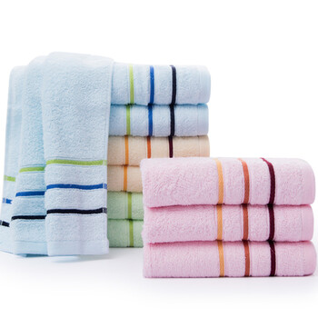 洁丽雅(Grace)毛巾家纺 纯棉素色洗脸巾软缎档擦脸洁面巾 十条装 红*3兰*3绿*2黄*2 74*33cm