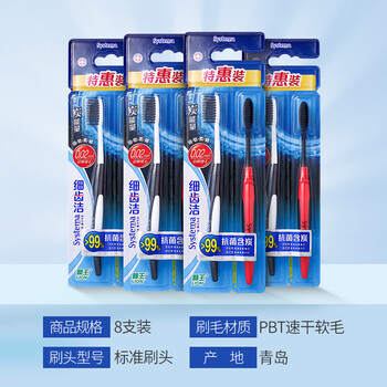 • 狮王(Lion)细齿洁炭能量软毛牙刷*8支装 极细含炭刷毛(颜色随机发货、新老包装随机发货)