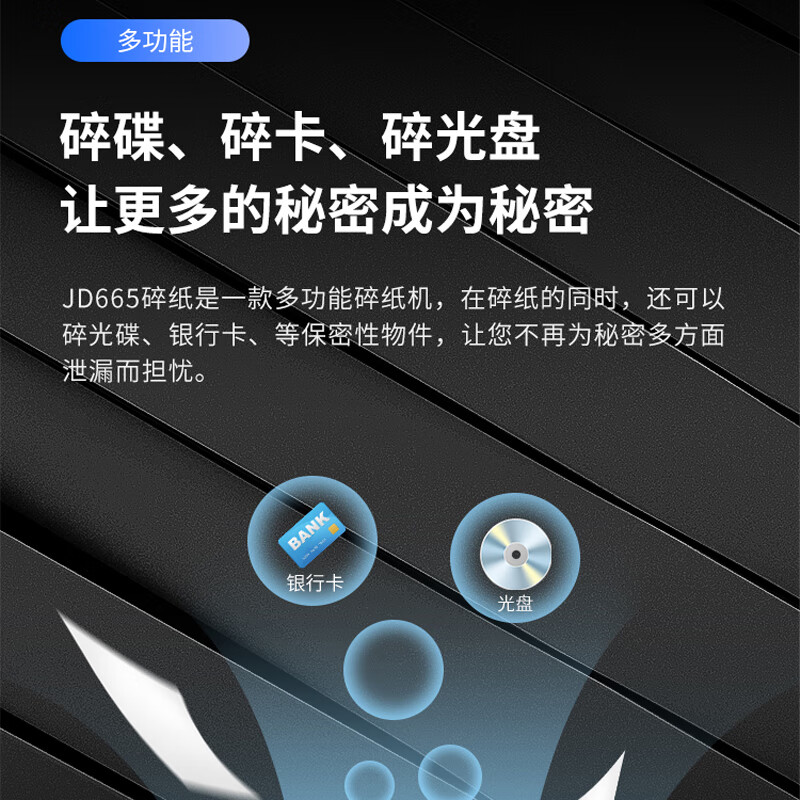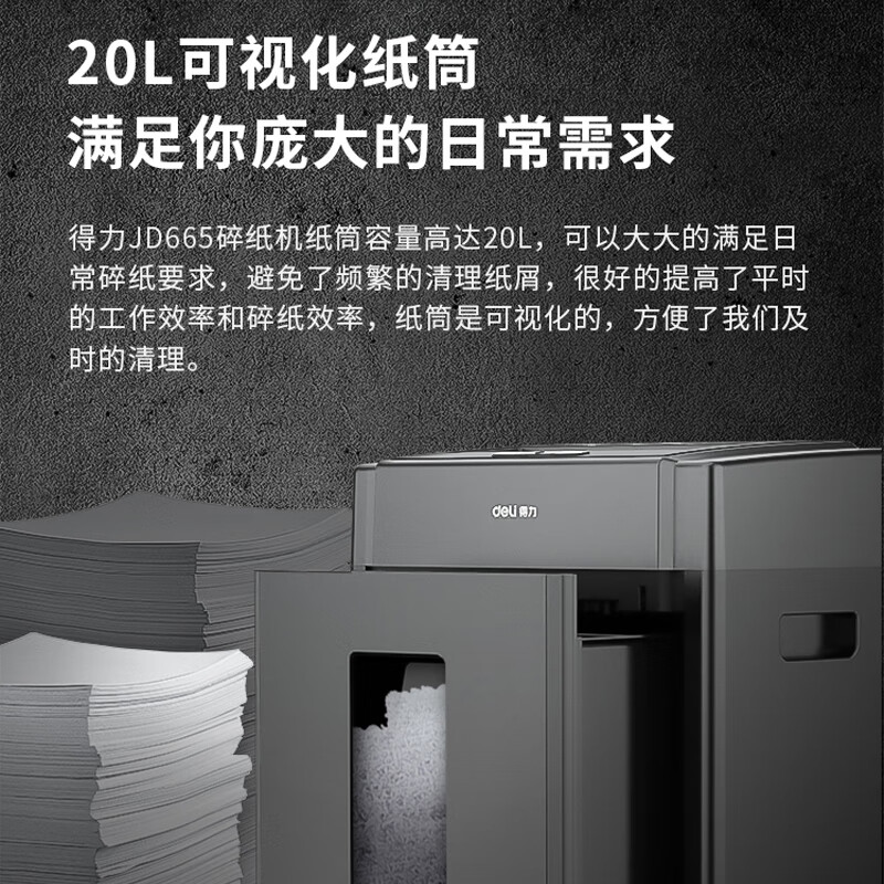 • 得力 碎纸机 (单次8张 20L 持续10分钟 可碎卡碎光盘)JD665
