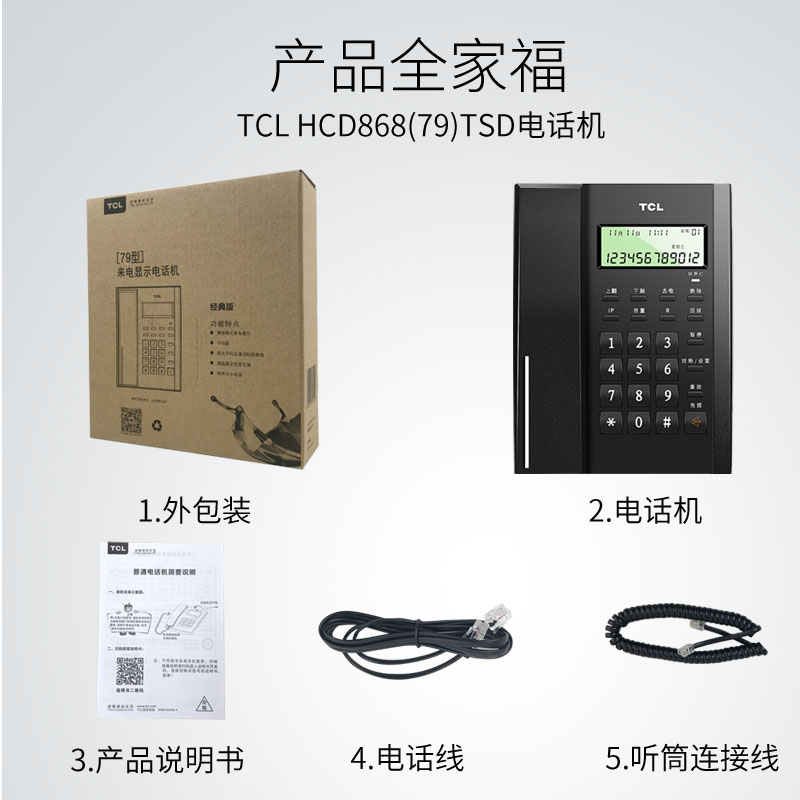 • TCL 电话机座机 HCD868(79) TSD经典版 (黑色)