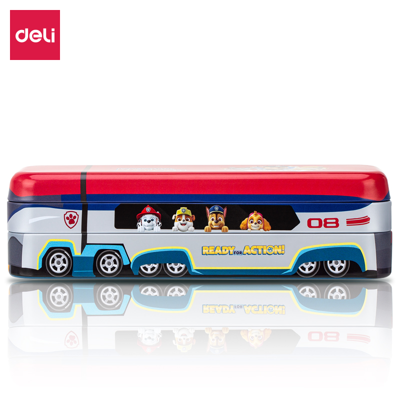 • 得力(deli) 汪汪队救援大巴车文具盒马口铁三层可折叠铅笔盒 红色70854