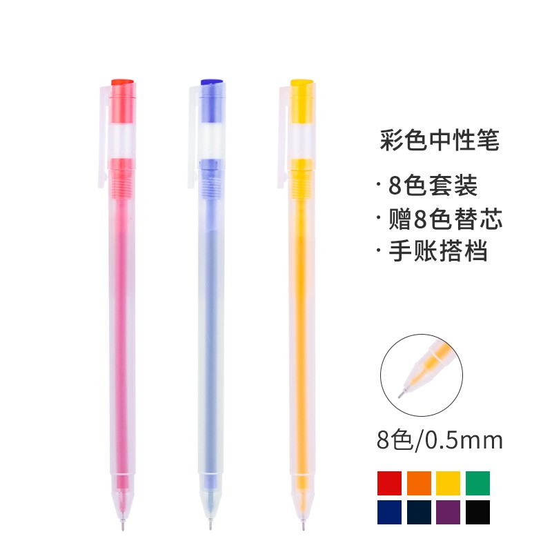 • 得力(deli) 彩色中性笔套装 糖果8色拔帽全针管签字笔 33160