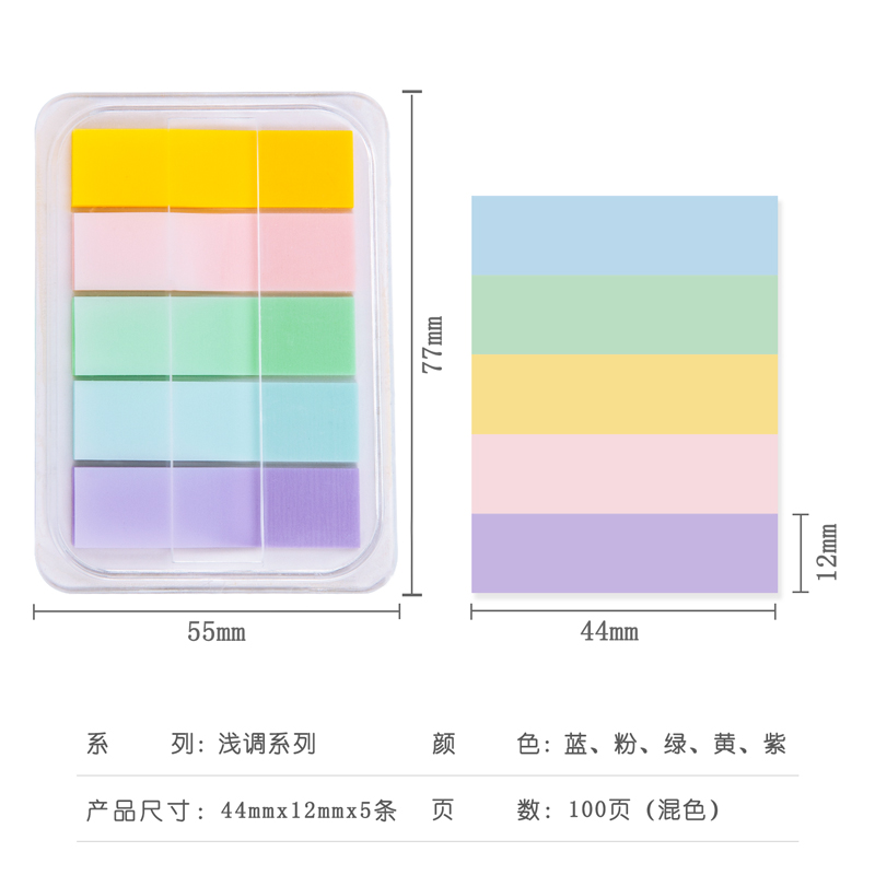 • 得力(deli) 100张5色浅调系列淡彩荧光膜指示标签贴 44mmx12mm 21606