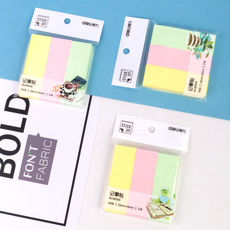 得力(deli)300张3色分条 便利贴便签纸 76x25mm记事贴 66306