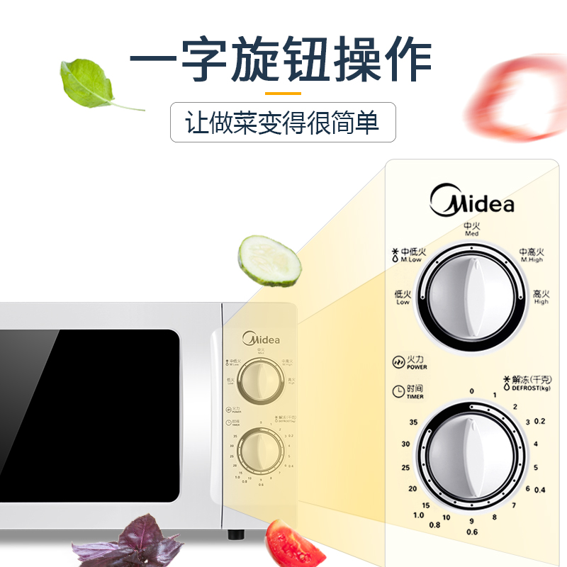美的(Midea)M1-L213B 快捷微波炉 360°转盘加热 旋钮操控 精准控温 五档火力
