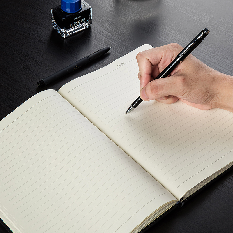 得力(deli)16K112张大号商务皮面本 办公会议记事本笔记本 黑色3161