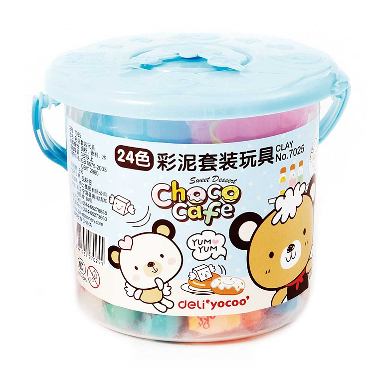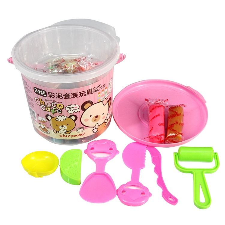 得力7025橡皮泥24色儿童玩具幼儿园宝宝安全桶装泥小皮泥小学生专用手工制作彩泥超轻粘土无毒手工黏土套装带模具