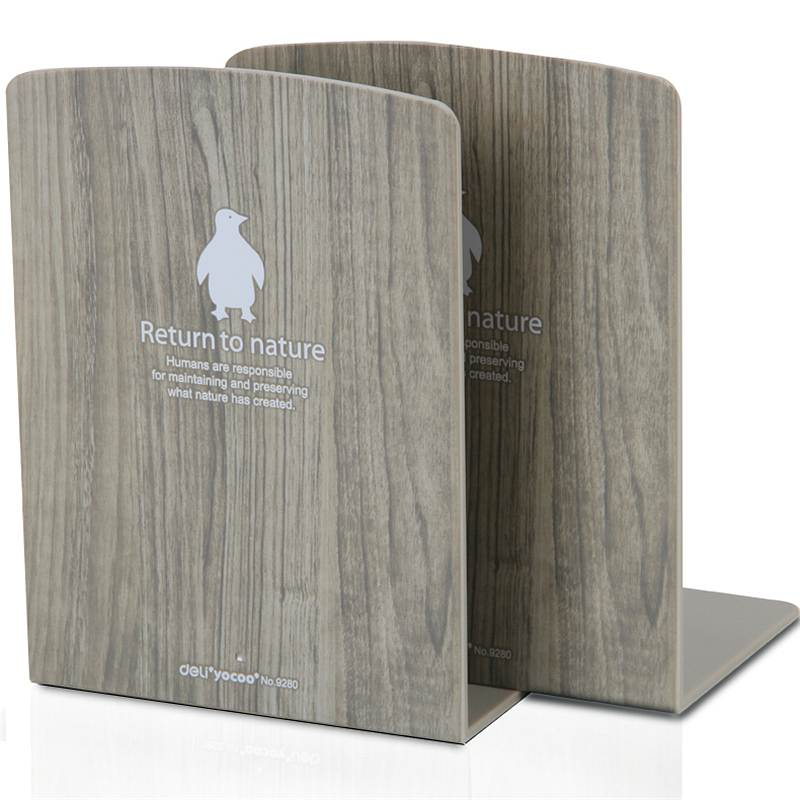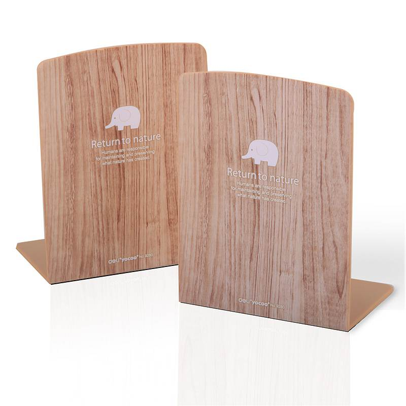 得力9280书立简约书立架伸缩创意卡通高中生学生用塑料木纹一对价