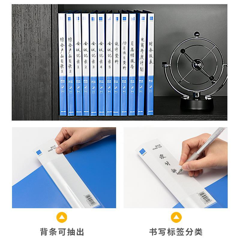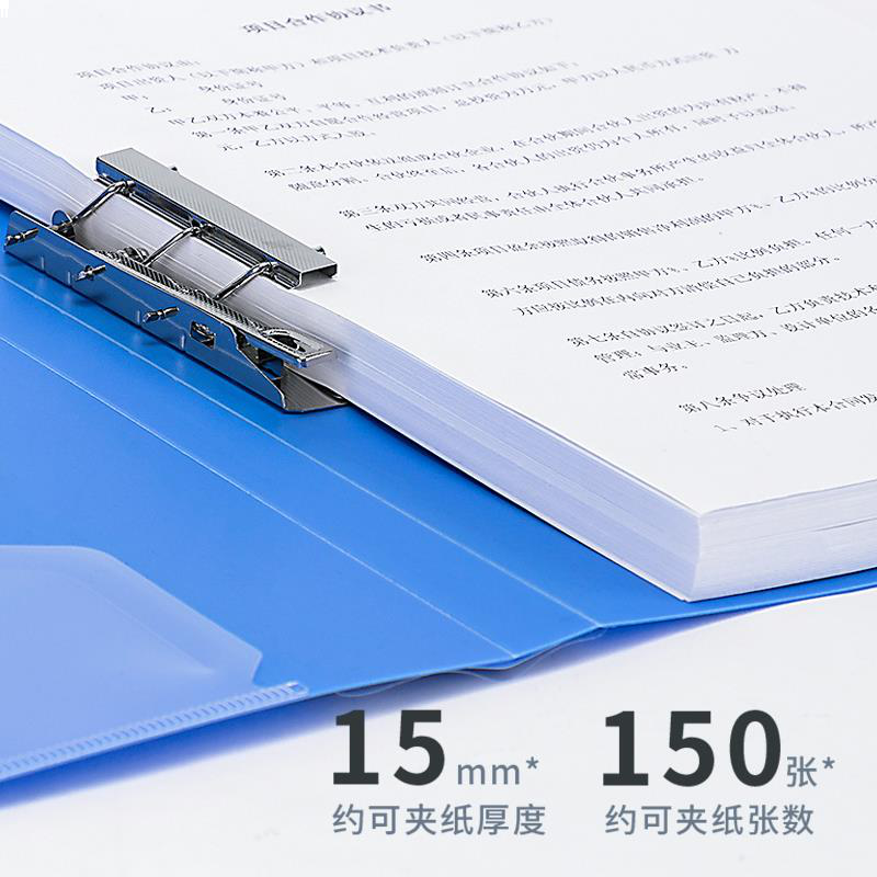 得力(deli)A4金属单强力夹+插页袋硬文件夹5301蓝色 5个装