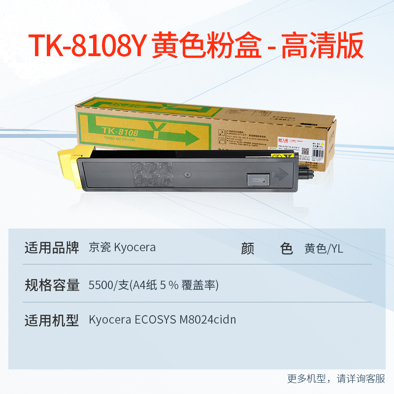 天威 TK-8108Y粉盒 黄色 适用京瓷KYOCERA ECOSYSM8024cidn复印机墨粉打印一体复合机碳粉粉筒粉仓