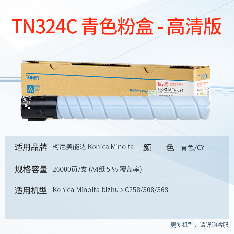 天威 TN324C粉盒 青色 适用柯尼卡美能达Konica Minolta bizhubC308碳粉308墨盒柯美368复印机粉盒粉筒