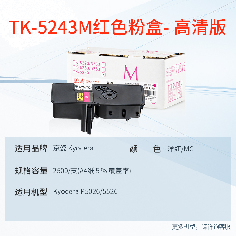 天威 TK-5243粉盒 红色 适用京瓷KyoceraP5026碳粉M5526复印机墨粉TK-5243M墨盒粉筒粉仓