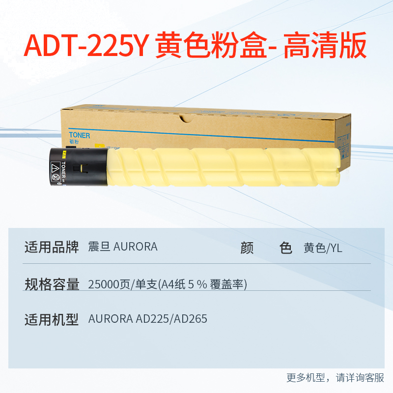天威 ADT-225Y粉盒 黄色 适用震旦AURORAAD225复印机墨粉AD265碳粉ADT225YL大容量粉筒粉仓