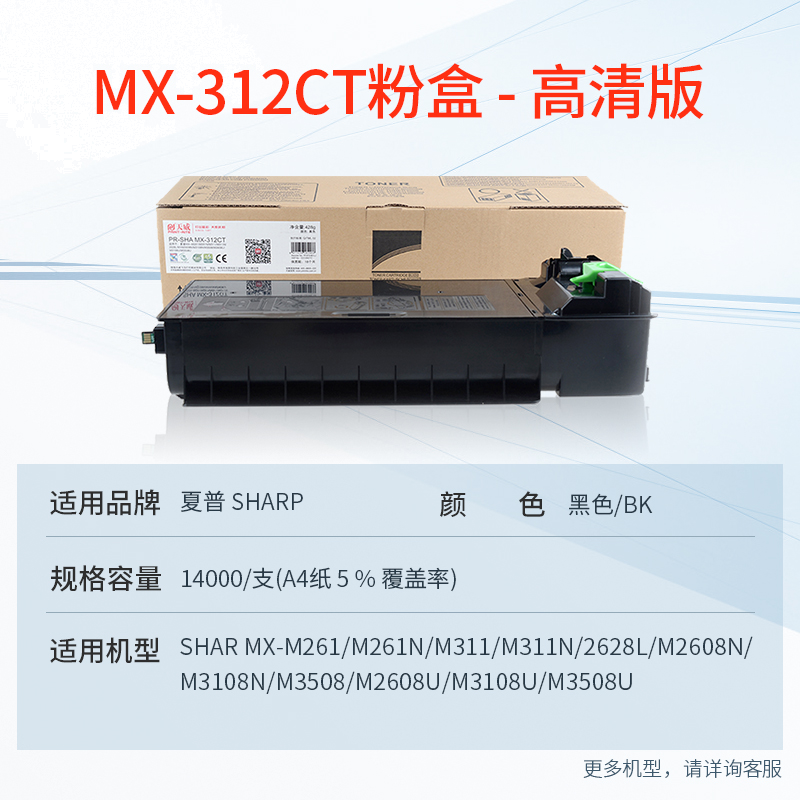 天威 MX-312CT粉盒 适用SHARP夏普MX-2608N碳粉M3508N/UM3108N/U墨盒2628LM261NM311N复印机墨粉粉筒