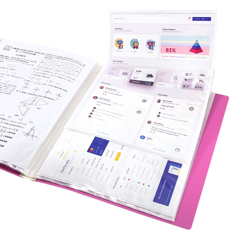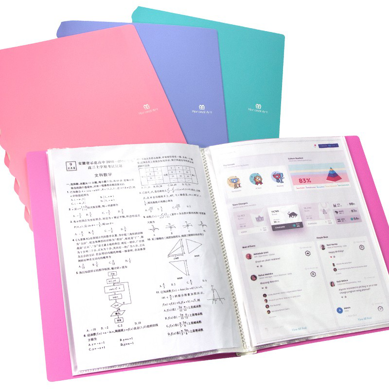 金得利莫兰迪多彩波浪花边A4资料册文件夹透明插页袋多层档案册40页学生试卷资料收纳册CF954CF954桔梗蓝40页