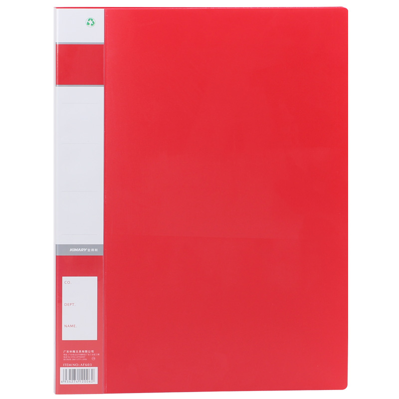 金得利(KINARY) AF603 A4单强力长押文件夹带插袋 红色