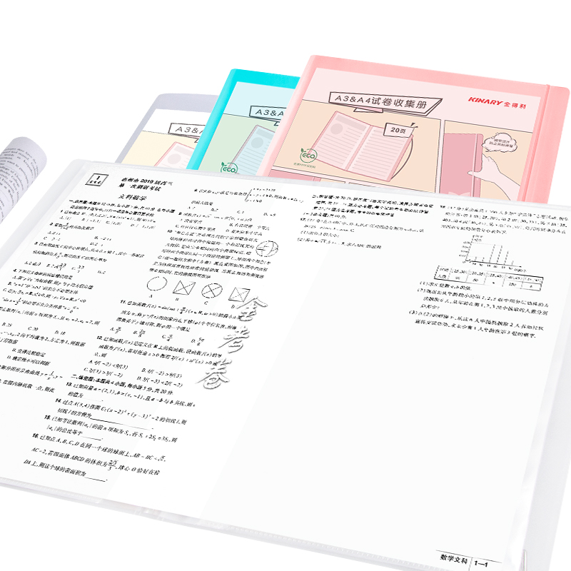 金得利20页试卷整理神器A3A4通用收纳放卷子大容量试卷夹文件夹学生用初高中生粉色米白蓝色随机发SJ002