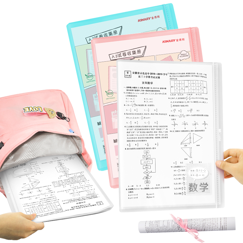 金得利a3试卷整理神器20页收纳袋学生用文件夹高中生资料册小学生卷子夹粉色蓝色米白随机发SJ001