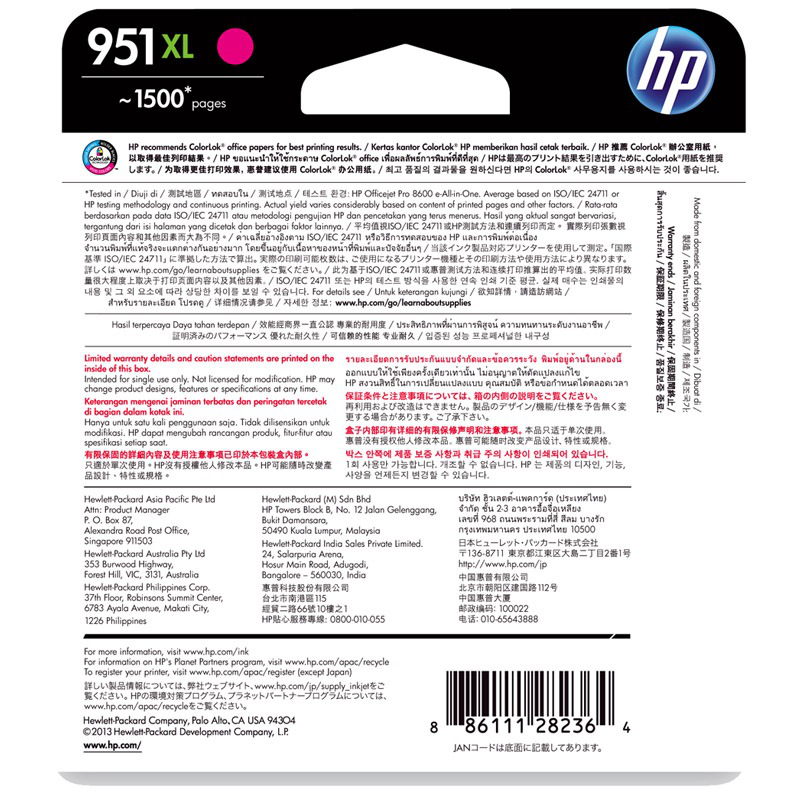 惠普(HP) CN047AA 951XL 大容量品红色墨盒(适用 8600plus8100)