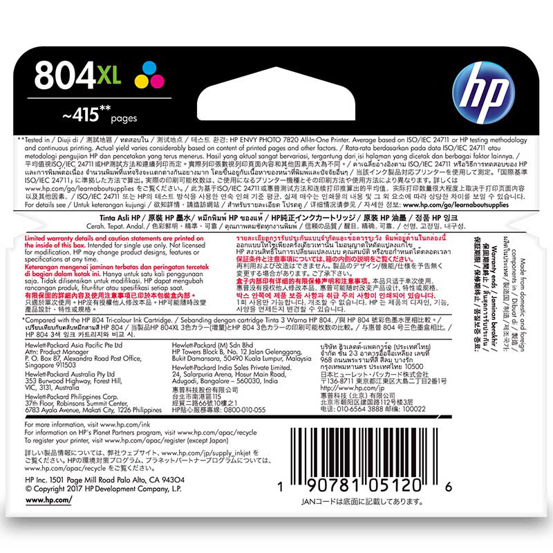 惠普(HP)T6N11AA 804XL 彩色墨盒(适用于HP ENVY Photo 6220/HPENVYPhoto6222)