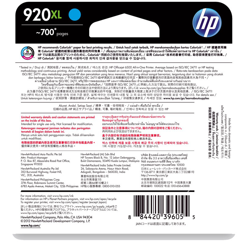 惠普(HP)CD972AA 920XL号 超高容青色墨盒(适用Officejet Pro600065007000)