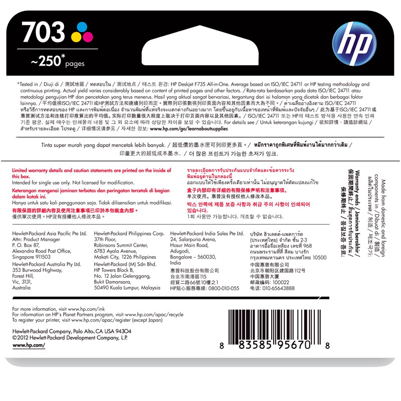 惠普(HP)CD888AA 703号彩色墨盒(适用DJ F735 D730 K109a/gK209a/gPhotosmartK510a)