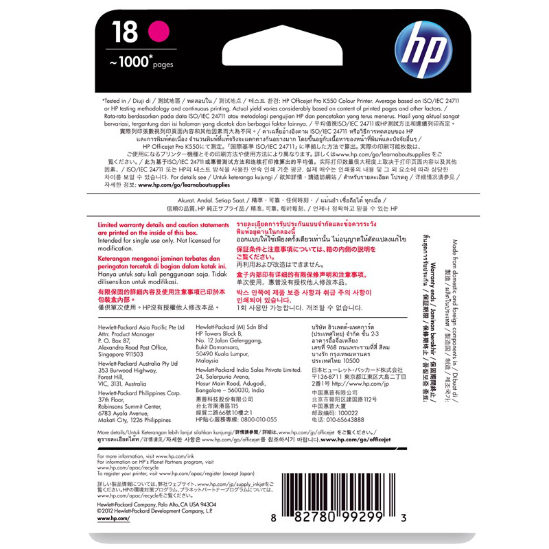 惠普(HP)C4938A 18号品红色墨盒(适用HPOfficejetL7380,L7580,L7590,ProK5300,K5400dn,K8600)