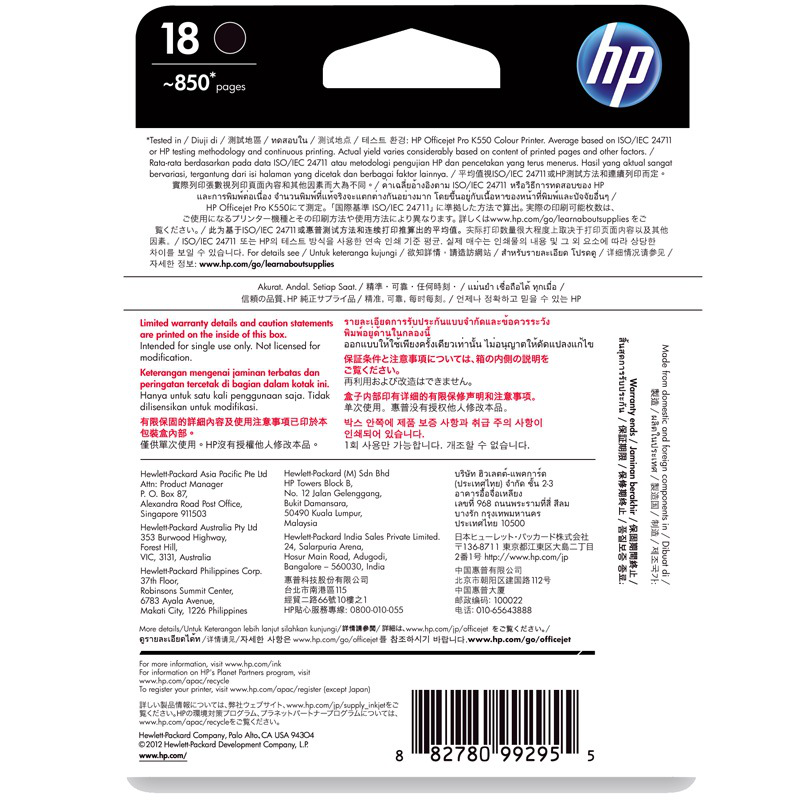 惠普(HP)18号 黑色墨盒(C4936A)(适用HPOfficejetL7380,L7580,L7590,ProK5300,K5400dn,K8600)