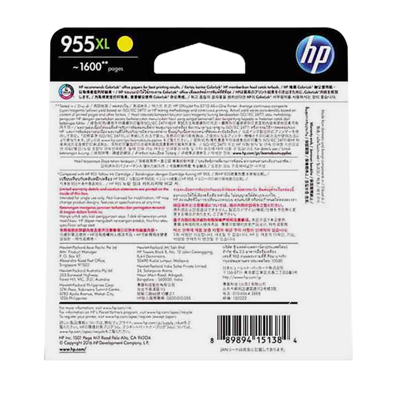 惠普(HP)L0S69AA 高容量黄色墨盒 955XL(适用7740/8210/8216/8710/8720/8730机型)约1600页