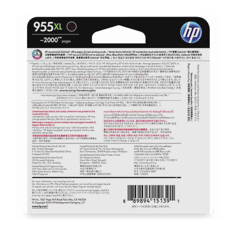 惠普(HP)L0S72AA 高容量黑色墨盒 955XL(适用7740/8210/8216/8710/8720/8730机型)约2000页