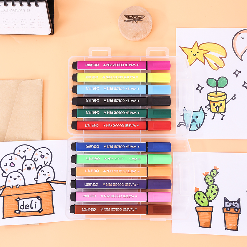 得力(deli)70656 可水洗12色水彩笔绘画笔 粗三角杆 盒装