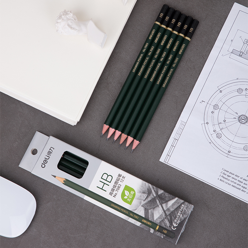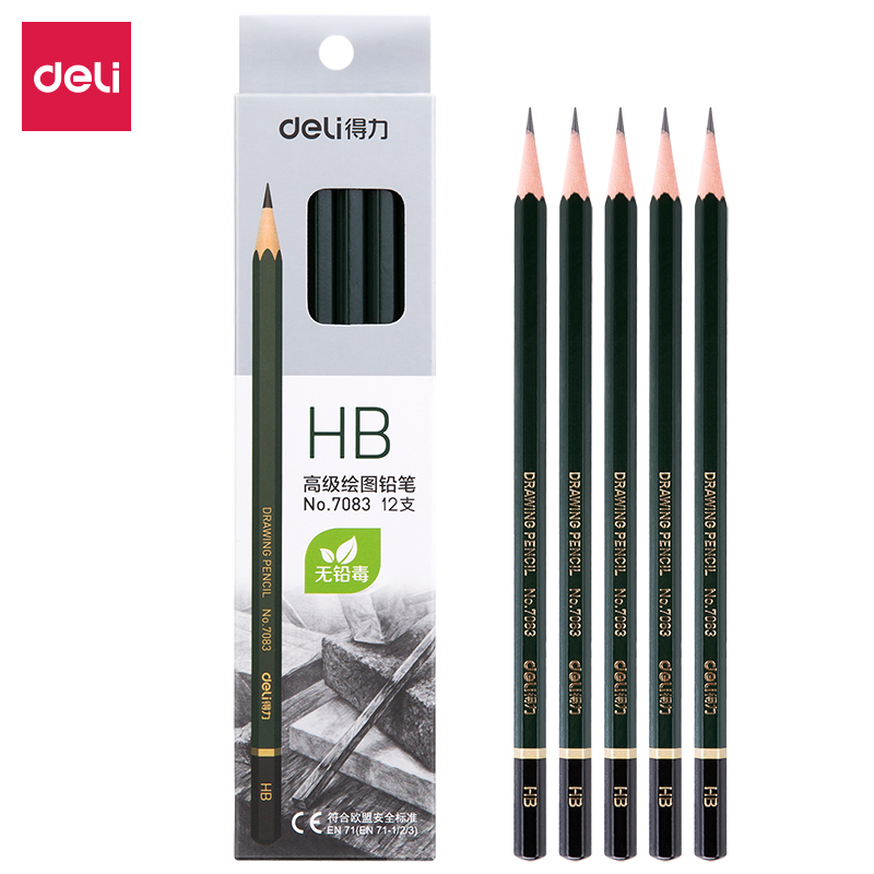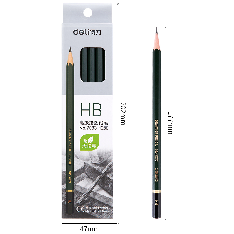 得力(deli)安全石墨铅芯素描绘图HB铅笔学生铅笔 12支/盒7083