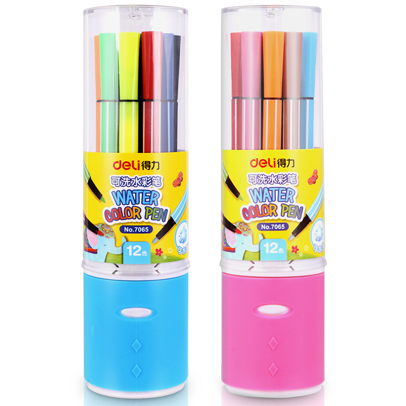 得力(deli) 7065 绚丽多彩可洗水彩笔/绘画笔 12色/筒包装颜色随机