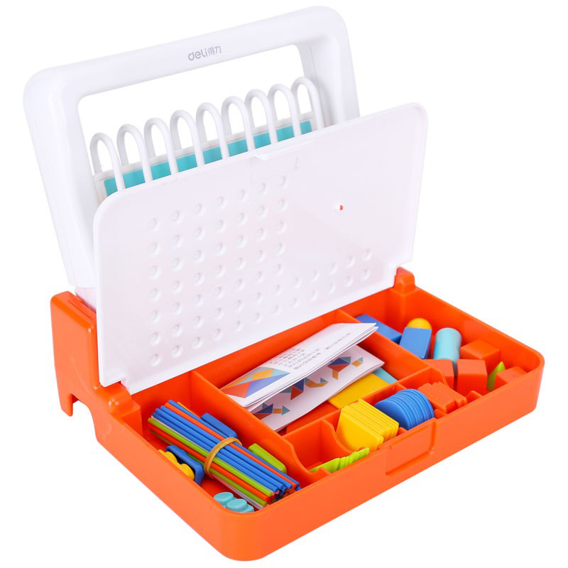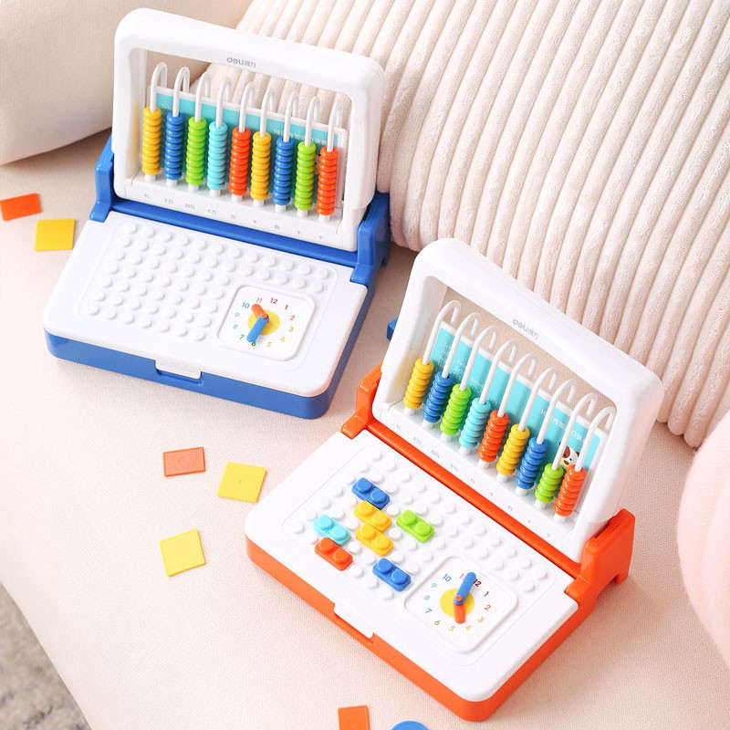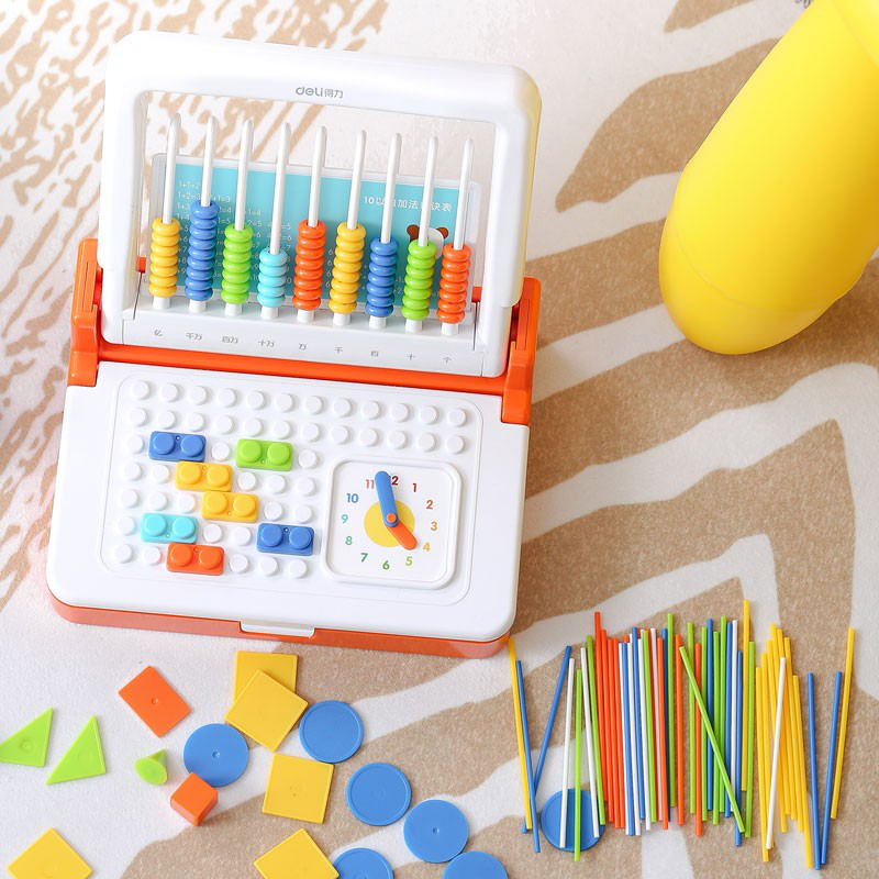 得力(deli)9行儿童学具盒 学生数学计数器多功能计算算术架 橙色74318