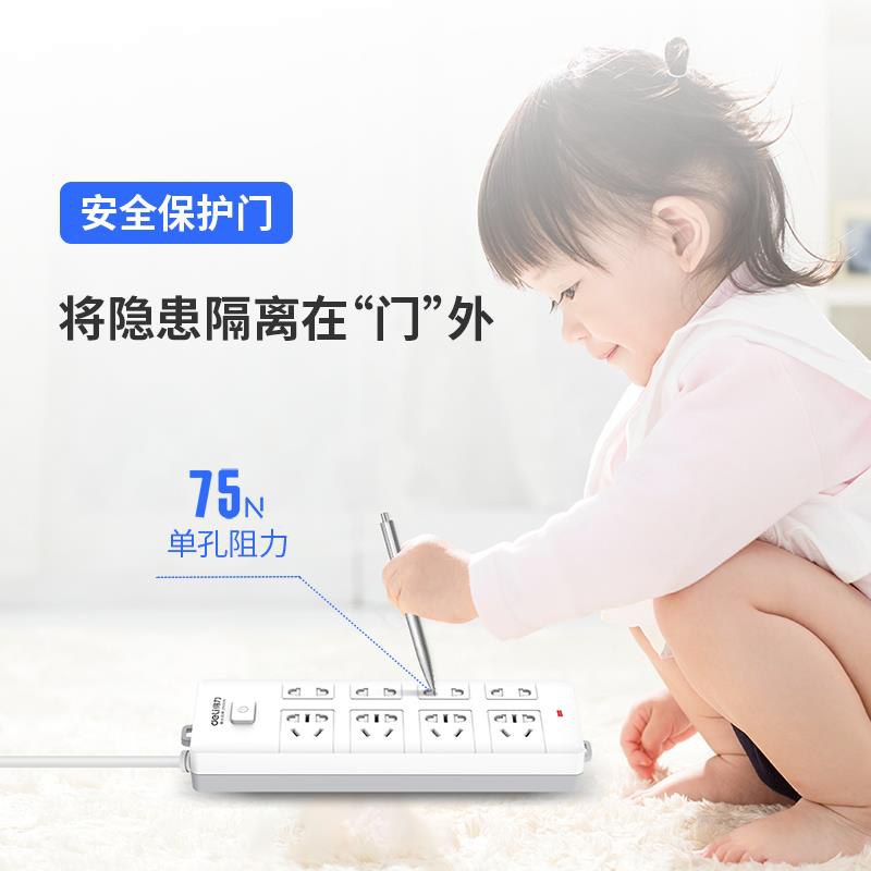 得力(deli) 新国标安全插座拖线板总控开关8位5米18259