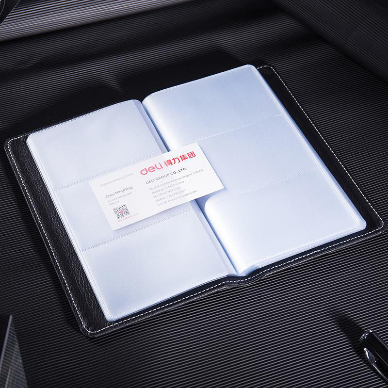 得力(deli)90袋(180枚)皮面摊开式名片册 男女商务名片夹办公用品颜色随机5792