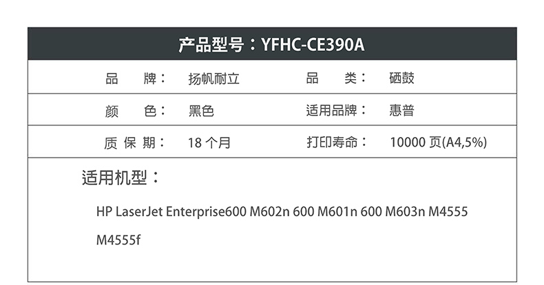 扬帆耐立CE390A 硒鼓 适用惠普M602n M601n M603n M4555f-商专版