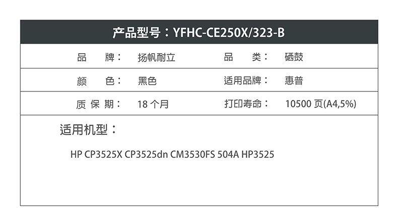 扬帆耐立CE250X 黑色硒鼓 粉盒 适用于惠普CP3525 CM3530-商专版